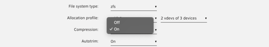 Unraid 将 ZFS 支持 vdevs 称作子池。大多数用户不需要这些,但有经验的用户可能会使用: